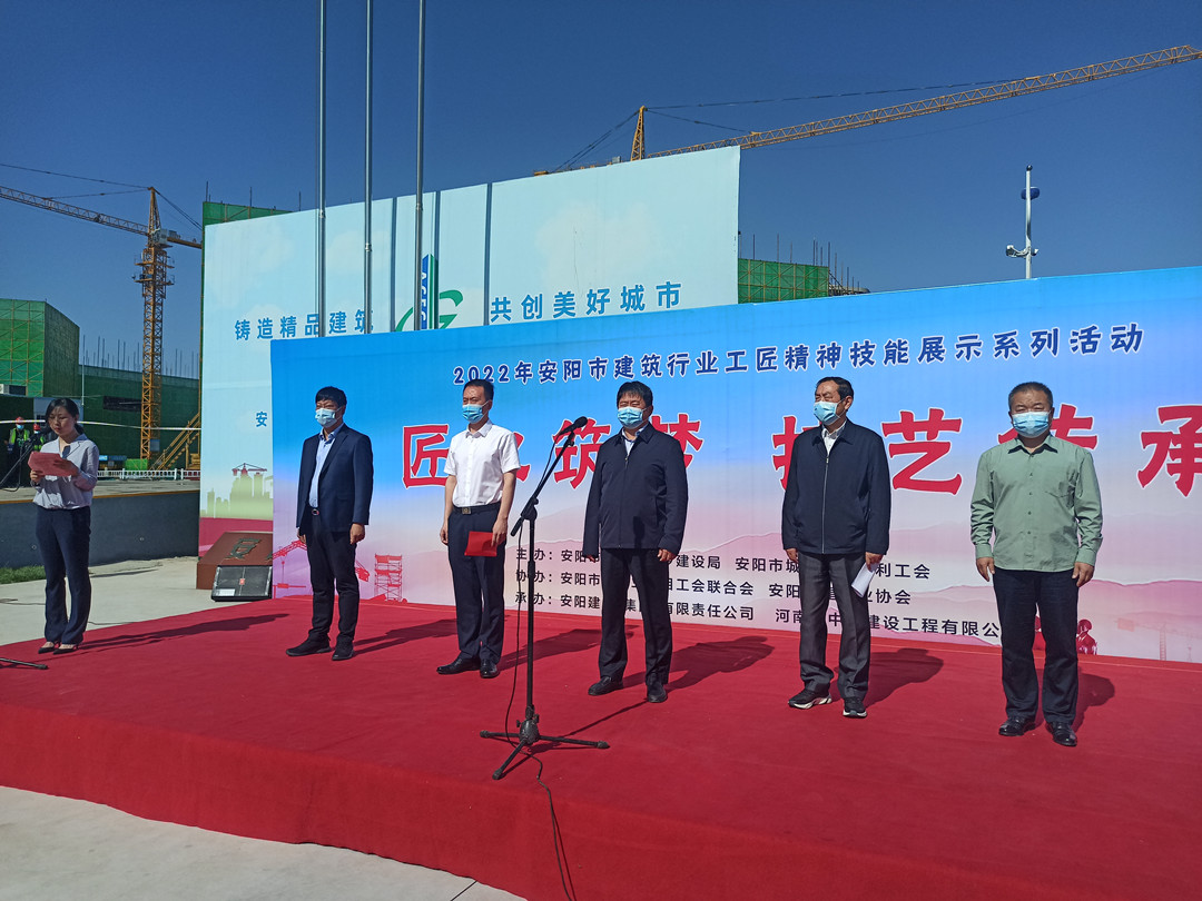 5月16日,由安陽市住建局、安陽市城建交通水利工會(huì)共同舉辦的“匠心筑夢(mèng) 技藝傳承”2022年度安陽市建筑行業(yè)工匠技能展示活動(dòng)在安陽師范學(xué)院教學(xué)實(shí)驗(yàn)綜合樓項(xiàng)目工地舉行。集團(tuán)公司常務(wù)副總楊金貴、副總經(jīng)理王福民、王超帶隊(duì)參加了活動(dòng)。